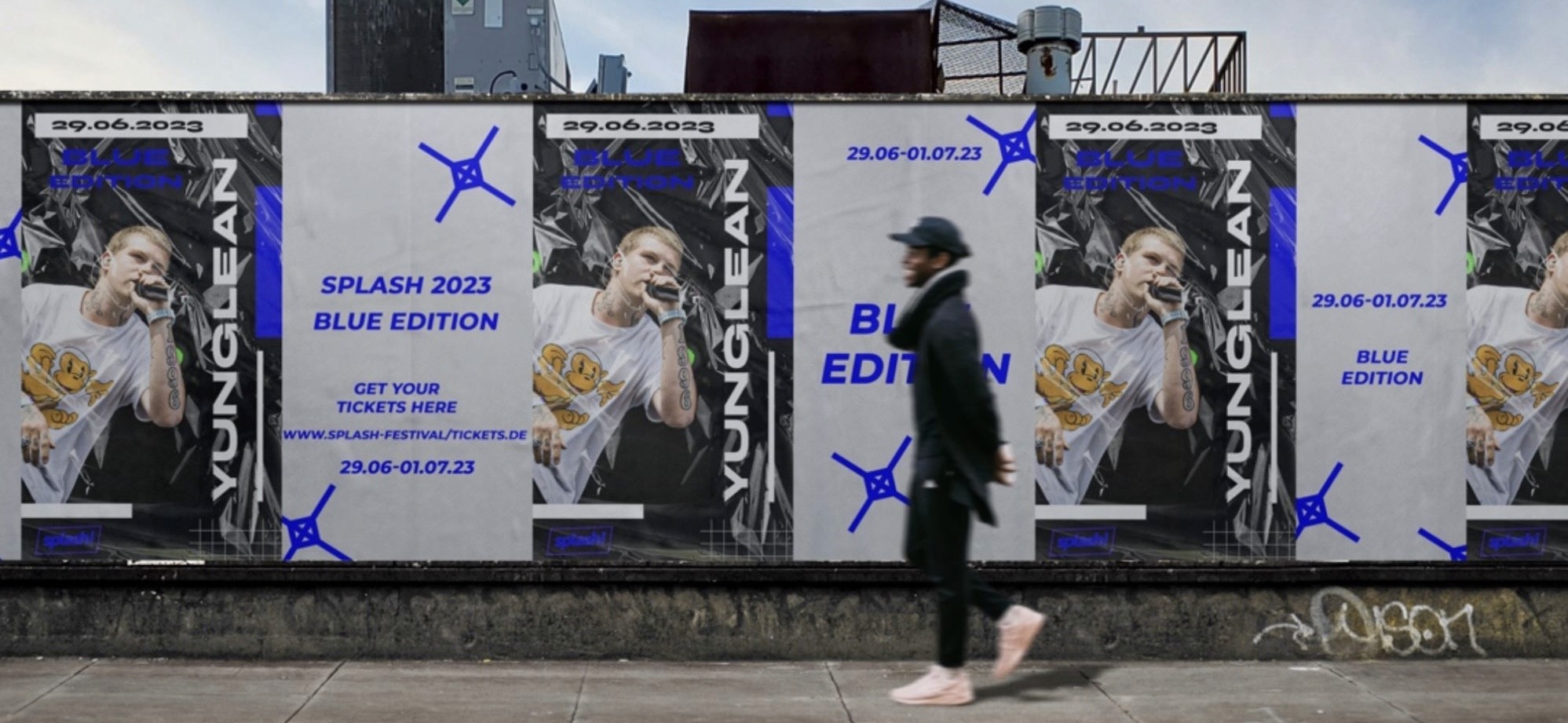 Im Zentrum standen ein dynamischer, urbaner Look, moderne Typografie und ein markantes Farbkonzept in Blau und Schwarz. Die Gestaltung kombiniert fotografische Elemente mit grafischen Texturen, um den rauen, authentischen Vibe des Festivals einzufangen. Ziel war es, eine aufmerksamkeitsstarke, zeitgemäße Kampagne zu entwerfen, die sowohl im Stadtbild als auch digital wirkt.